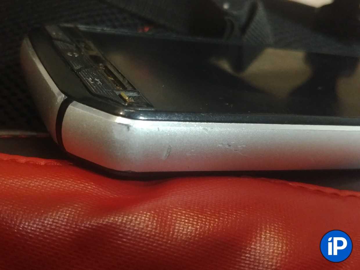 Пару отметин оставили куски отрезных кругов болгарки, а самый крупный — результат падения с огромной высоты, после которой iPhone превратился бы в пыль.