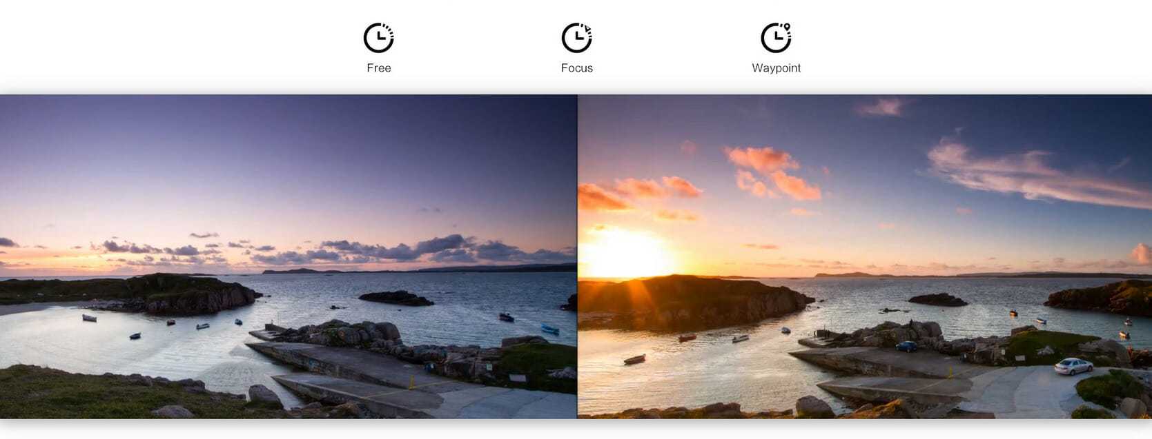 Режим позволяет в один тап реализовать профессиональную таймлапс съёмку без необходимости в постобработке. Доступны три варианта исполнения:
