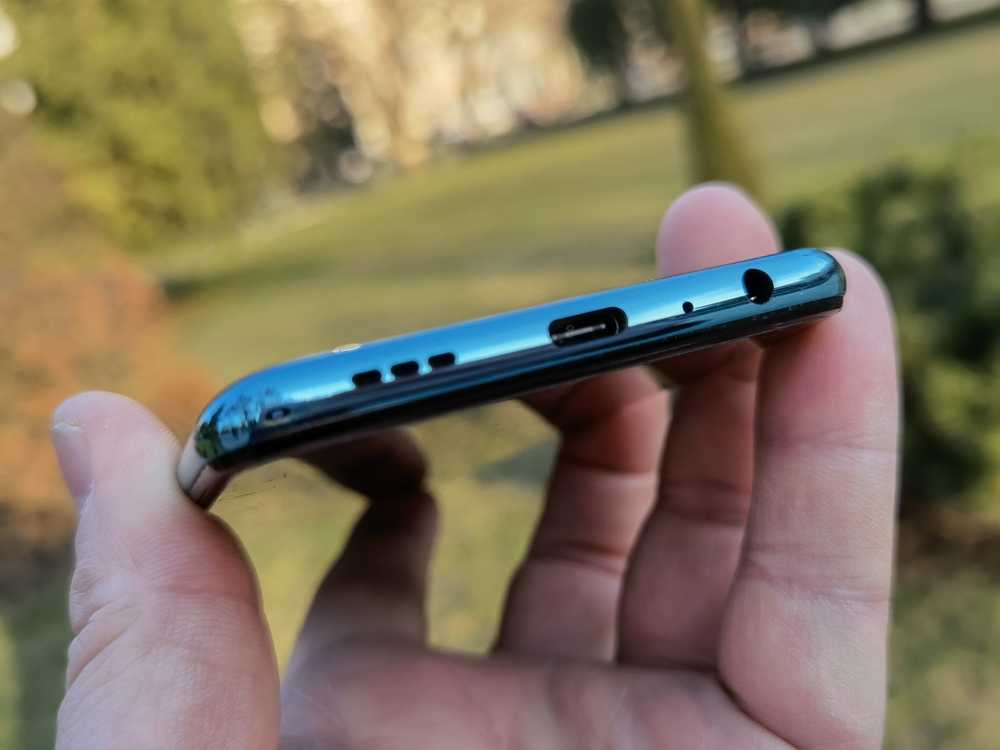 Снизу вы найдете 3,5-мм мини-разъем для подключения проводных наушников, порт USB Type-C, который можно использовать для подзарядки смартфона или подключения его к ПК или ноутбуку, рядом разместились микрофон и динамик. Вы тоже заметили, что нет сканера отпечатков пальцев? Просто, он как и у предшественника, комфортно разместился под экраном.