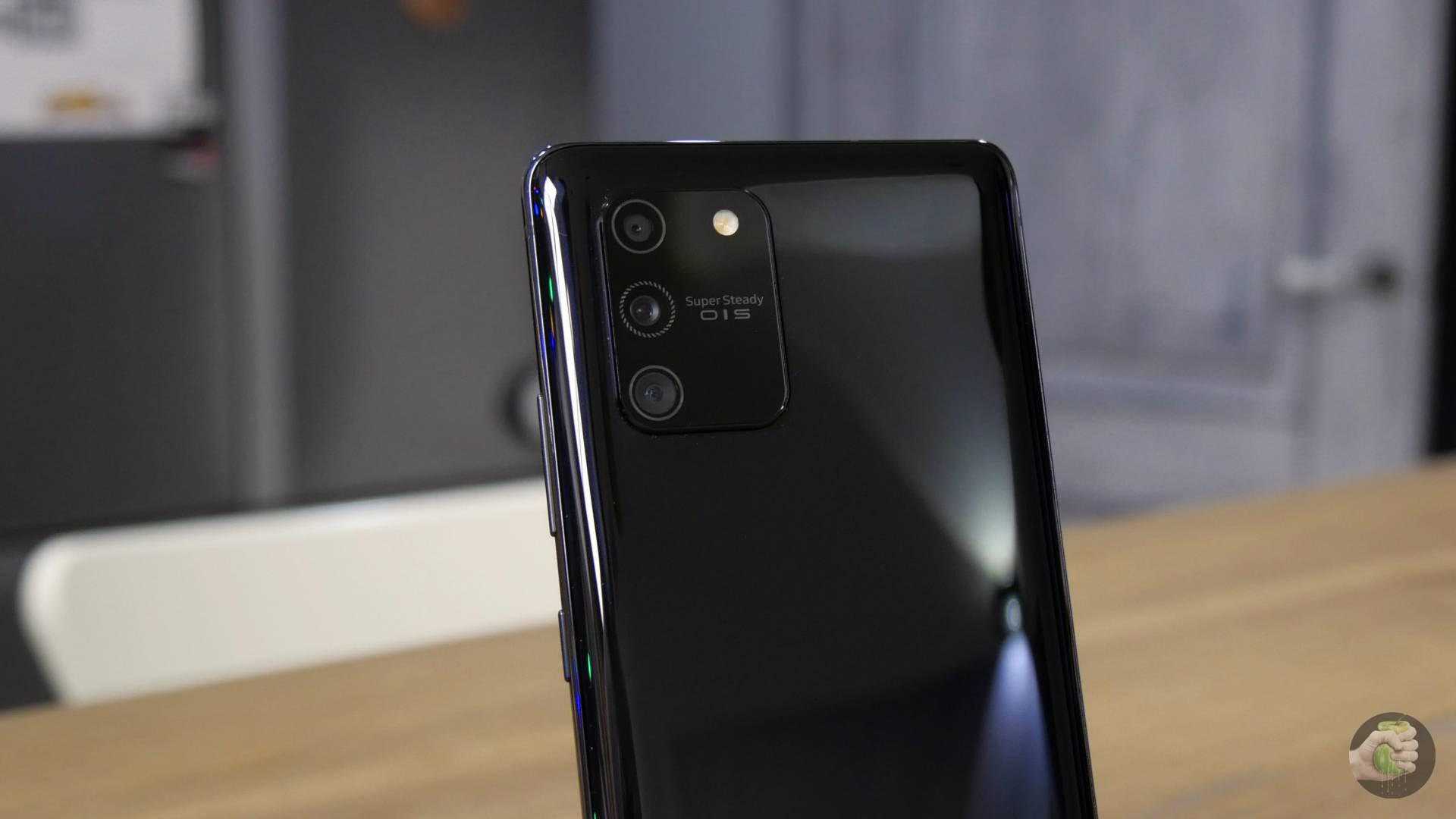 А вот сзади нас встречает первый компромисс — пластиковая крышка. Этот факт может не понравиться адептам стекла во флагманах, но я знаю, что есть и защитники: поменять крышку не так дорого. Но это то, что приближает смартфон к Galaxy A51, нежели к флагманским S10:
