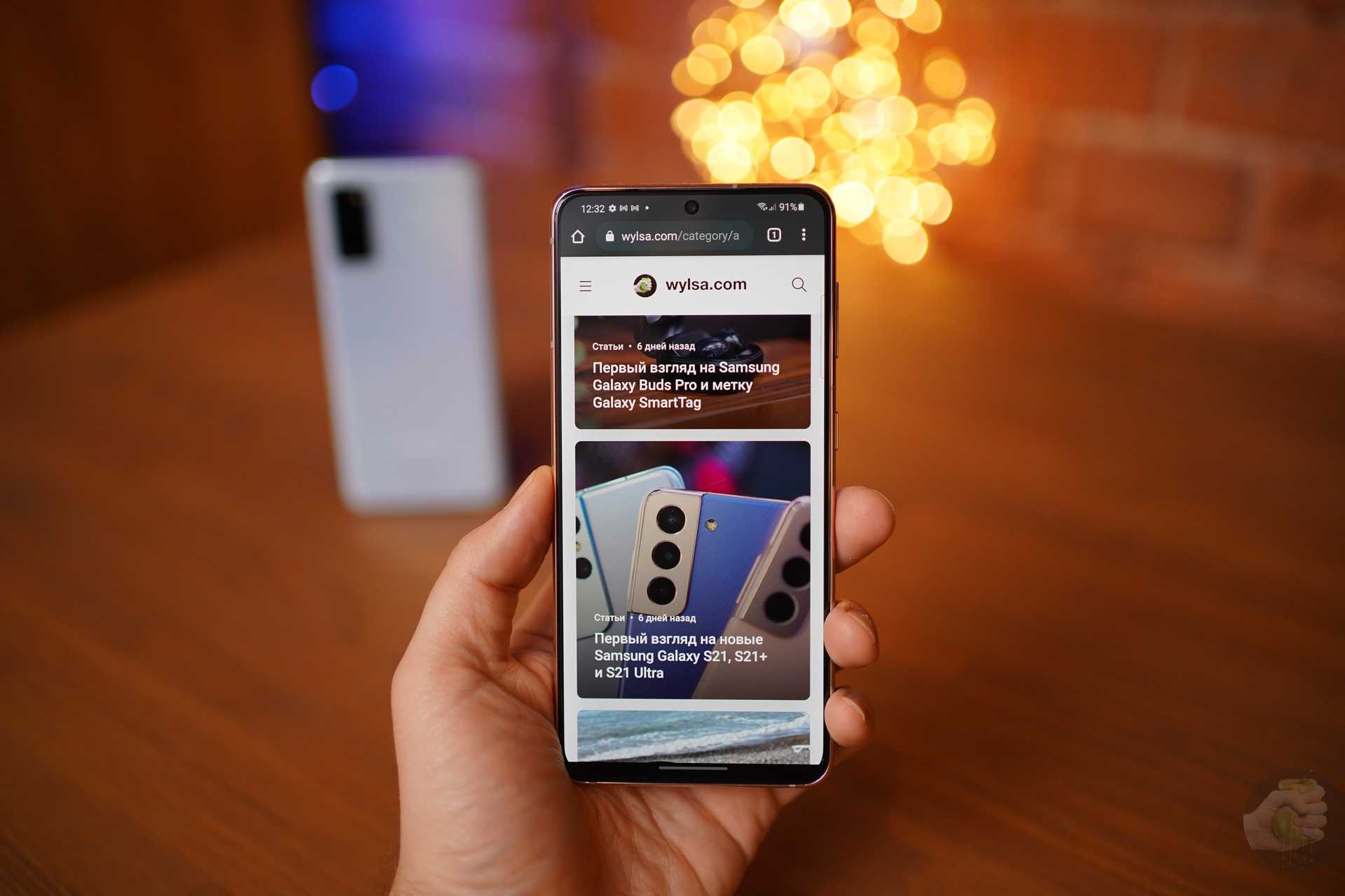 В Galaxy S21 мы получаем плоский 6,2-дюймовый экран без намёков на «водопады» по бокам. Это практично, удобно, пусть и не так эффектно, как было в Galaxy S20.