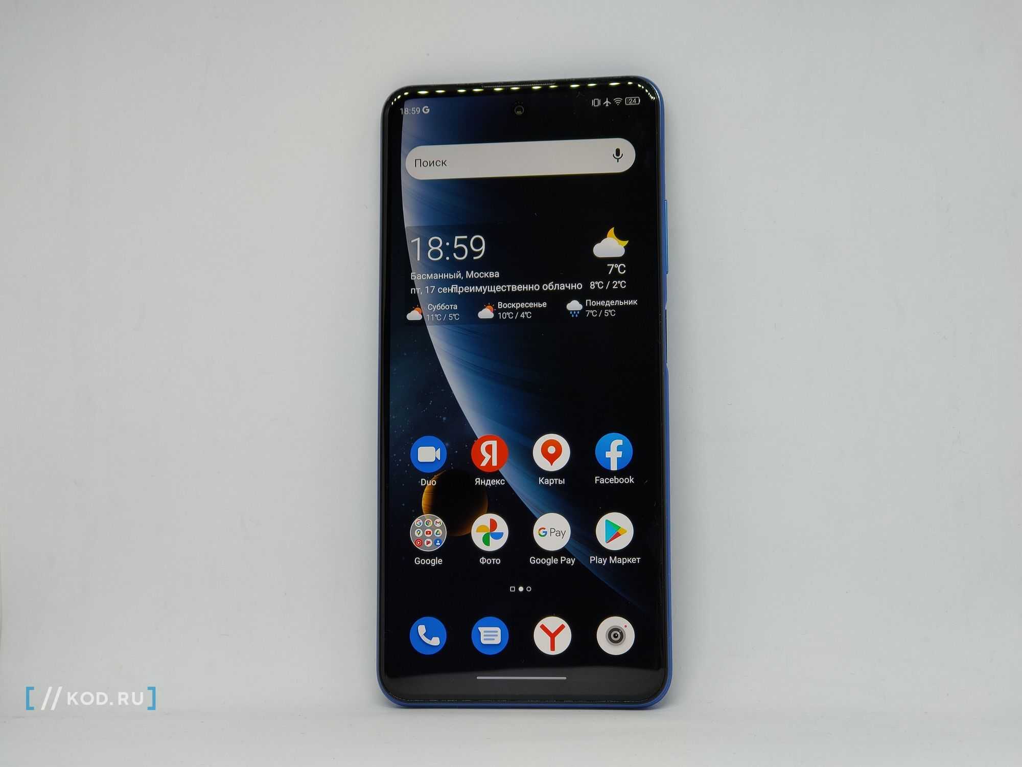 - Дисплей. Диагональ 6,67 дюйма, IPS-матрица с разрешением 2400 × 1080 пикселей (FHD+), 395 ppi, частота обновления 60 Гц