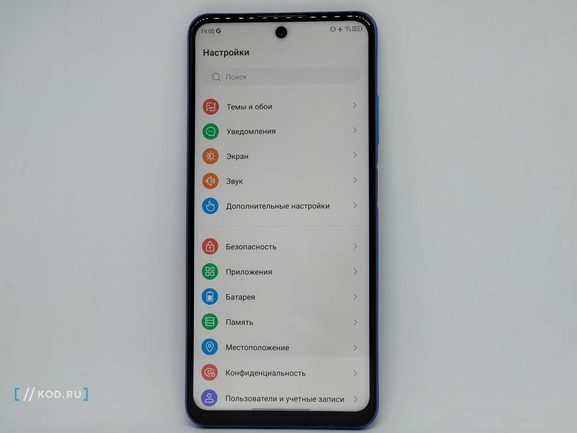 Экран из коробки идет без пленки, нанесено олеофобное покрытие, позволяющее быстро стирать отпечатки с дисплея. Какие-либо закругления рамок отсутствуют, разве что небольшая круглая кромка по краям, 2.5D, как ее называют маркетологи. Режим одной рукой я в настройках на нашел, так что пользователям с маленькими руками придется приспосабливаться. В целом, дисплей не вызвал у меня негативных эмоций, разве что сказалась упомянутая разница с более плавным экраном моего основного смартфона.