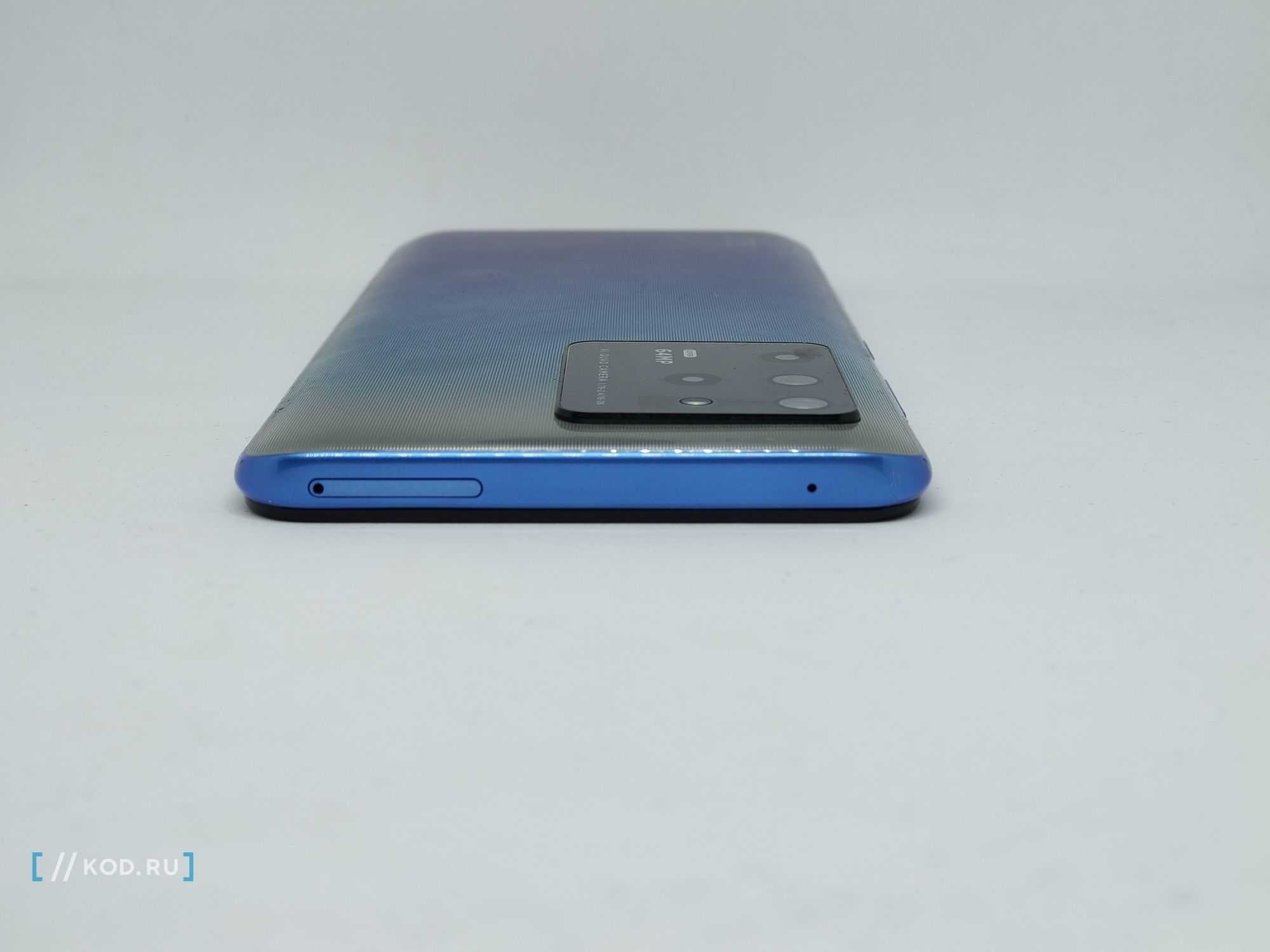 На тесте побывала более яркая версия смартфона в расцветке «синий перламутр», с градиентной пластиковой спинкой, цвет которой переходит от фиолетового в светло-голубой. От угла света оттенок не зависит, эффект достигается за счет цвета самого корпуса. В продаже есть и более строгий черный цвет («черный графит»). На спинку нанесена текстура из продольных линий во всю длину корпуса, дополнительный бонус к эргономике, хват становится более уверенным.