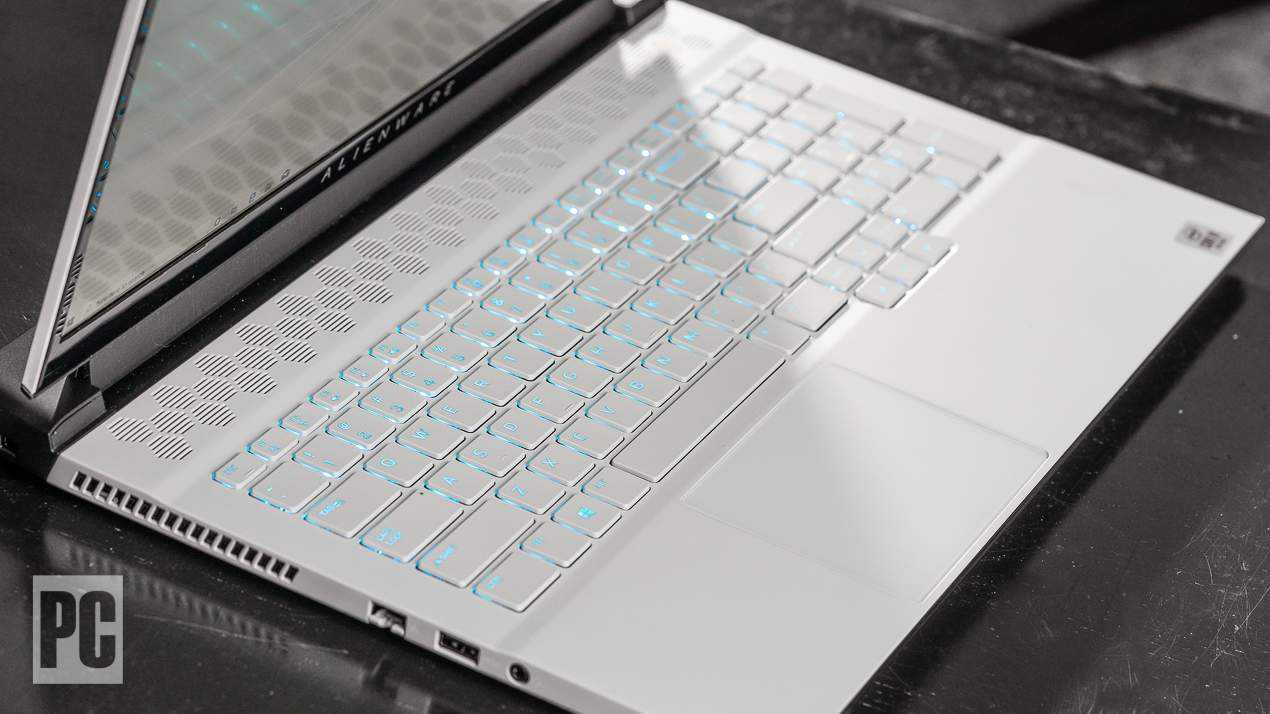 К клавиатуре Alienware m17 R3 у меня особых претензий нет. Хотя у клавиш здесь нет отчётливой обратной связи, их ход довольно большой, когда нажимать – удобно. RGB-подсветка отлично выглядит на фоне белого корпуса. Тачпад мог быть побольше и не представляет собой ничего особенного, его стеклянная поверхность обеспечивает плавное отслеживание движений.