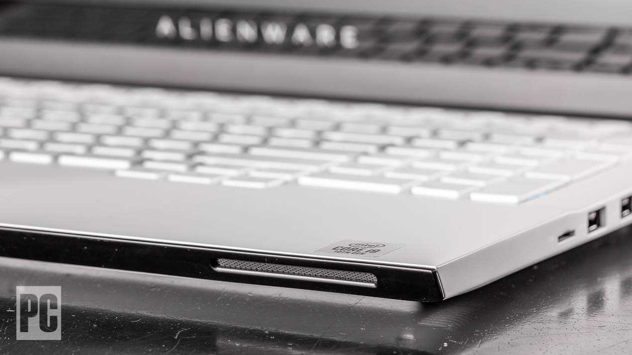 17,3-дюймовый дисплей окружен, к сожалению, толстой пластиковой рамкой, которая отвлекает. Над клавиатурой находится еще один логотип RGB Alienware, который также служит кнопкой питания, и клавиатуру можно включить в четырех настраиваемых зонах освещения. Вся колода покрыта удобным, приятным на ощупь материалом.