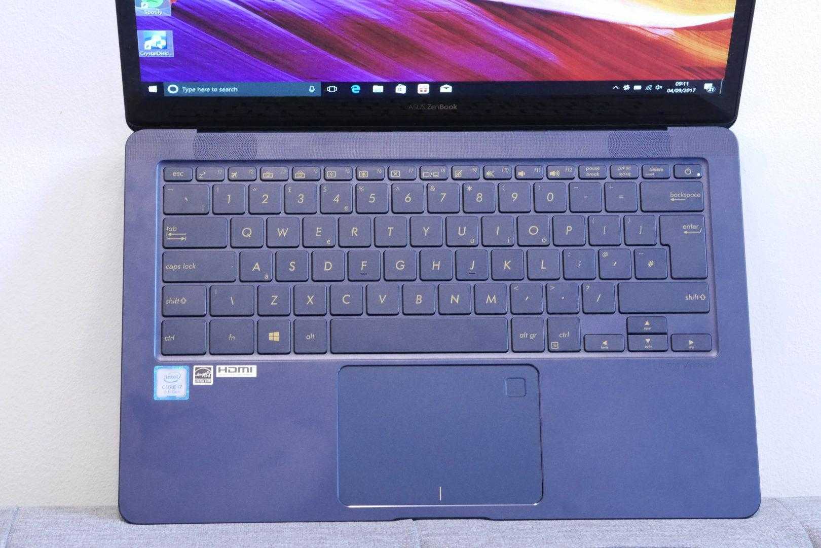 + В ASUS Zenbook 3 Deluxe UX490UA применяется стандартная клавиатура без цифрового блока. Компактные размеры накладывают ограничения, ход клавиш короткий и с непривычки вызывает дискомфорт. Есть регулируемая трехуровневая подсветка.