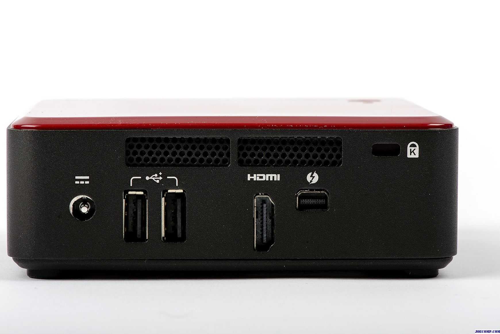 В самой NUC есть четыре порта на задней панели: два порта USB 2.0, один выход HDMI и разъем Thunderbolt. Вы также найдете разъем питания и разъем для замка, совместимый с Kensington, на задней панели. Третий порт USB 2.0 находится спереди. Нет аналоговых аудиоразъемов, поэтому весь аудиовыход должен быть направлен через порт HDMI.
