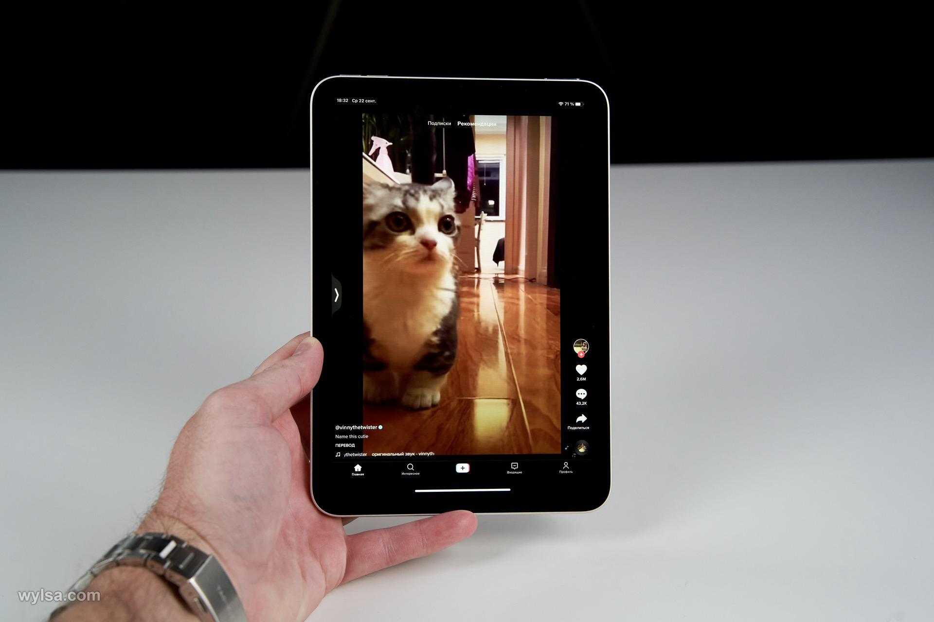 Диагональ дисплея 8,3 дюйма, тип Liquid Retina, есть антибликовое покрытие, поддерживается Apple Pencil второго поколения. Разрешение экрана 2266 × 1488 точек. Вы заметите сразу, что на главном экране есть отступы слева и справа, они большие, это фишка последней версии ОС. Если уберёте виджеты, то в ряду окажется пять иконок вместо четырёх, ну а отступы убрать нельзя, привыкайте.