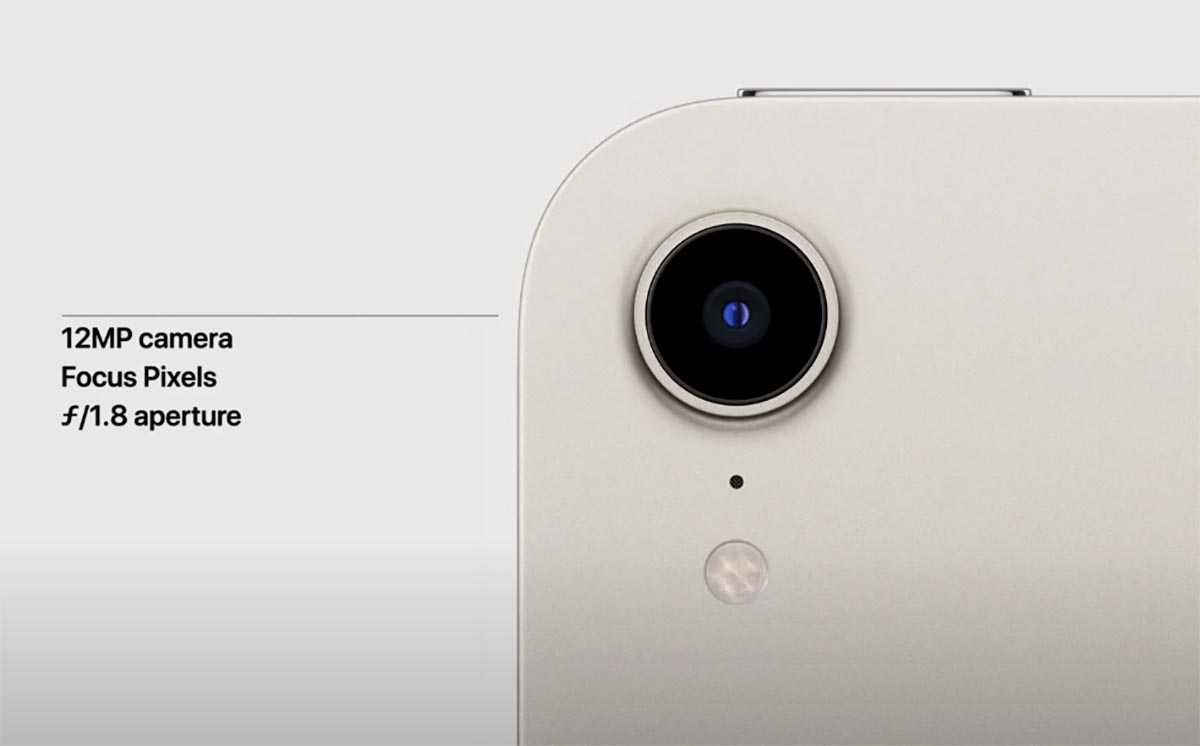 В iPad mini 6 неплохо обновили камеру. Теперь это 12-мегапиксельный широкоугольный модуль ƒ/1.8. Есть True Tone Quad‑LED вспышка, а для обработки фото предусмотрена технология Smart HDR 3.