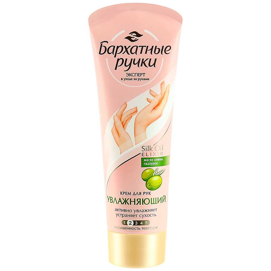 Крем от бренда «Бархатные ручки» не имеет запаха, а также красителей в составе. Средство эффективно устраняет сухость, при этом гарантируя безопасность по части аллергии.