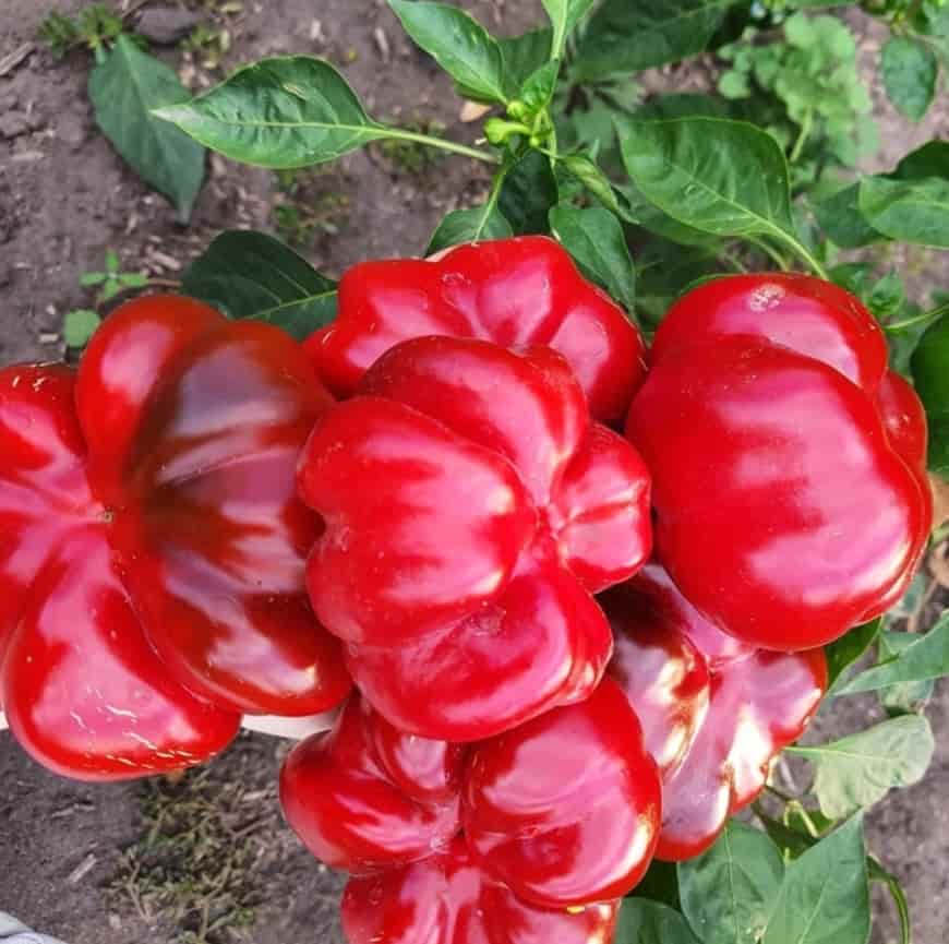 Необычное название не связано с высокими урожаями. Перцы имеют необычную треугольную форму, напоминающую египетскую пирамиду. Однако они не идеально треугольные, а умеренно округлые. Что касается урожайности, то этот показатель достигает 6 кг/1 м2. Детерминантное растение высотой 50 см прекрасно удерживается без опоры. Плоды имеют длину 12 см, весят 150 г, а созревают через 98 суток.