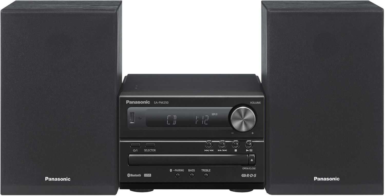 Компактная и функциональная микросистема формата 2,0 от Panasonic. Общая мощность музыкального центра составляет всего 20 Вт, но этого вполне достаточно для качественного прослушивания музыки в небольшом по площади помещении. Небольшая мощность системы компенсируется ее функциональностью. Центр снабжен оптическим CD-приводом, который воспроизводит диски CD, CD-R, CD-RW. Кроме того, возможно воспроизведение музыки с USB-носителей (USB 2,0) и через Bluetooth в формате MP3. Система укомплектована эквалайзером с 5 предустановленными режимами: Heavy, Clear, Soft, Vocal и Flat и возможностью регулировки тембра высоких и низких частот. Помимо всего перечисленного эта модель снабжена радио-тюнером (AM, FM) и имеет возможность запоминать 45 радиостанций. Есть таймер, который позволяет запрограммировать включение и выключение системы в нужное время.