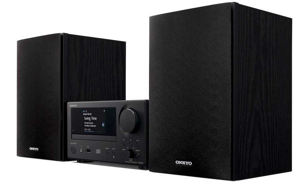 Первое место среди компактных систем занимает Onkyo CS-N575D. Это музыкальный центр, к которому можно подключать внешние жесткие диски. Помимо этого он работает с дисками и флешками. Поддерживается большое количество аудио форматов. Общий вес системы составляет 7.5 кг. Размер одной колонки: ширина 16 см, высота 25 см, глубина 18.4 см. Габариты основного блока – 11.7х21.5.29.7 см.