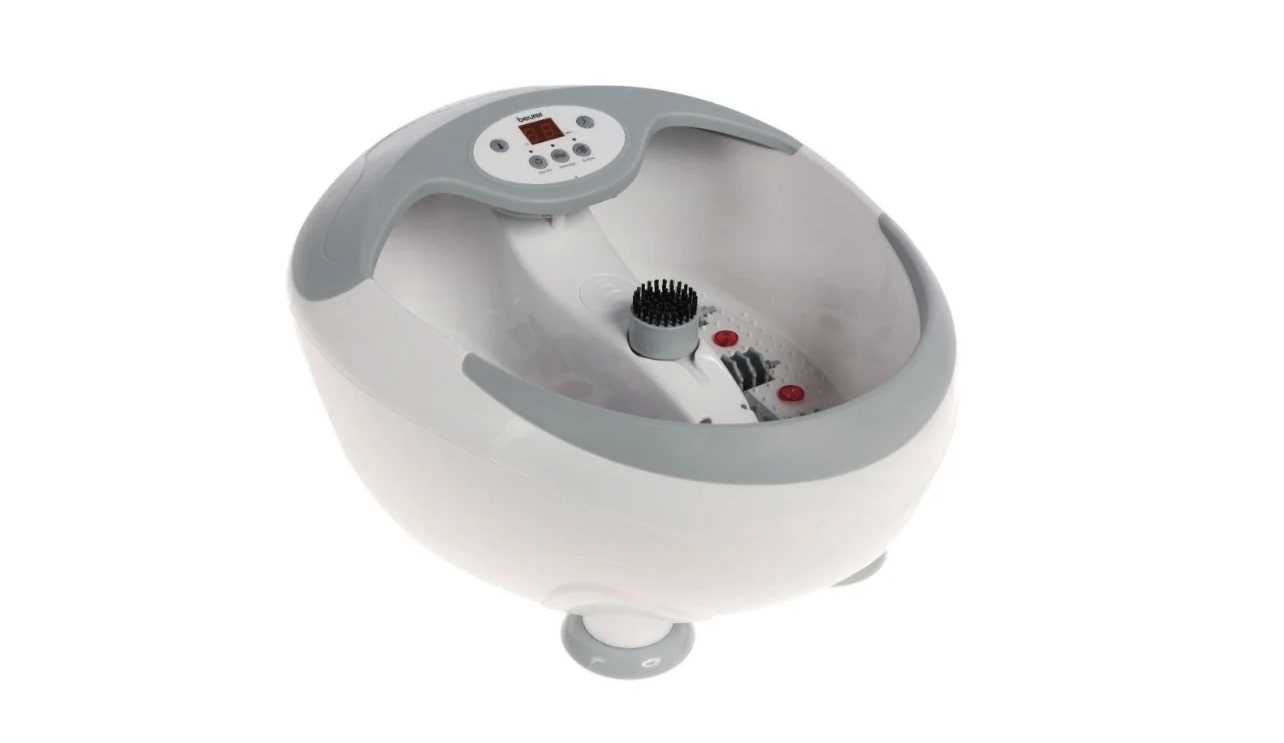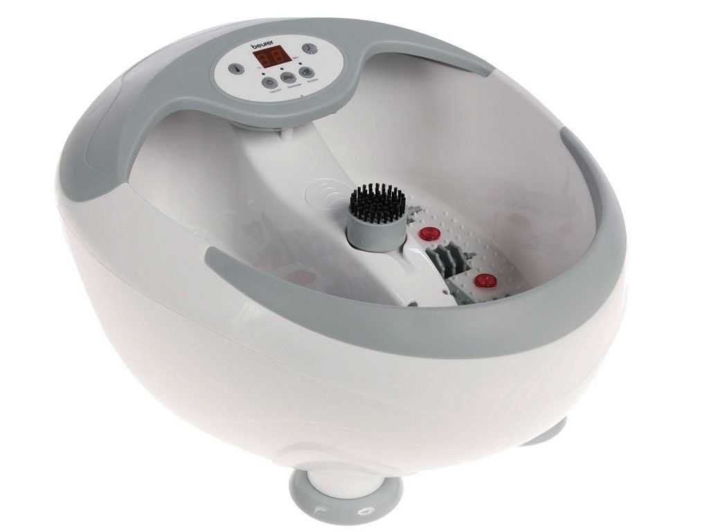 Лучшая ванночка для ног представлена компанией Beurer. Преимуществом модели Beurer FB50 является возможность как вибро, так и вихревого массажа. Последний особенно эффективен в качестве расслабляющих процедур для ступней с синдромом хронической усталости. Температурный режим поддерживается в пяти градациях от 35 до 48 градусов. В корпус встроен специальный магнит для проведения магнитной терапии. Для эффективного массажа рефлекторной зоны каждой из ног предусмотрены съемные роликовые насадки. В комплекте имеются также насадки для педикюра.