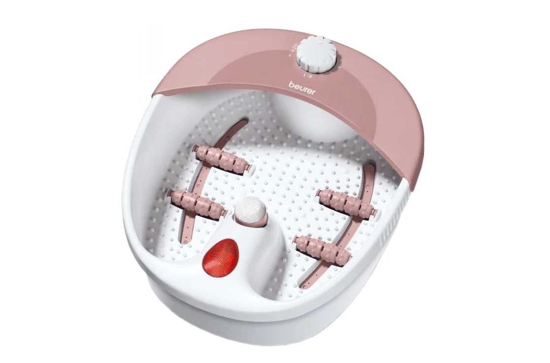Вибрационную, пузырьковую и механическую процедуру проведет Beurer FB Он работает с 2 роликами, оснащен 4 ИК точками, 16 магнитами, аромафильтром и насадками для педикюра.