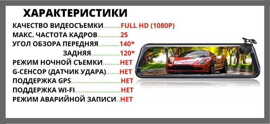 Это недорогой регистратор для транспортного средства. Он представляет собой зеркало заднего вида с дополнительной камерой. Его главное преимущество — цена, которая составляет 5000 ₽.