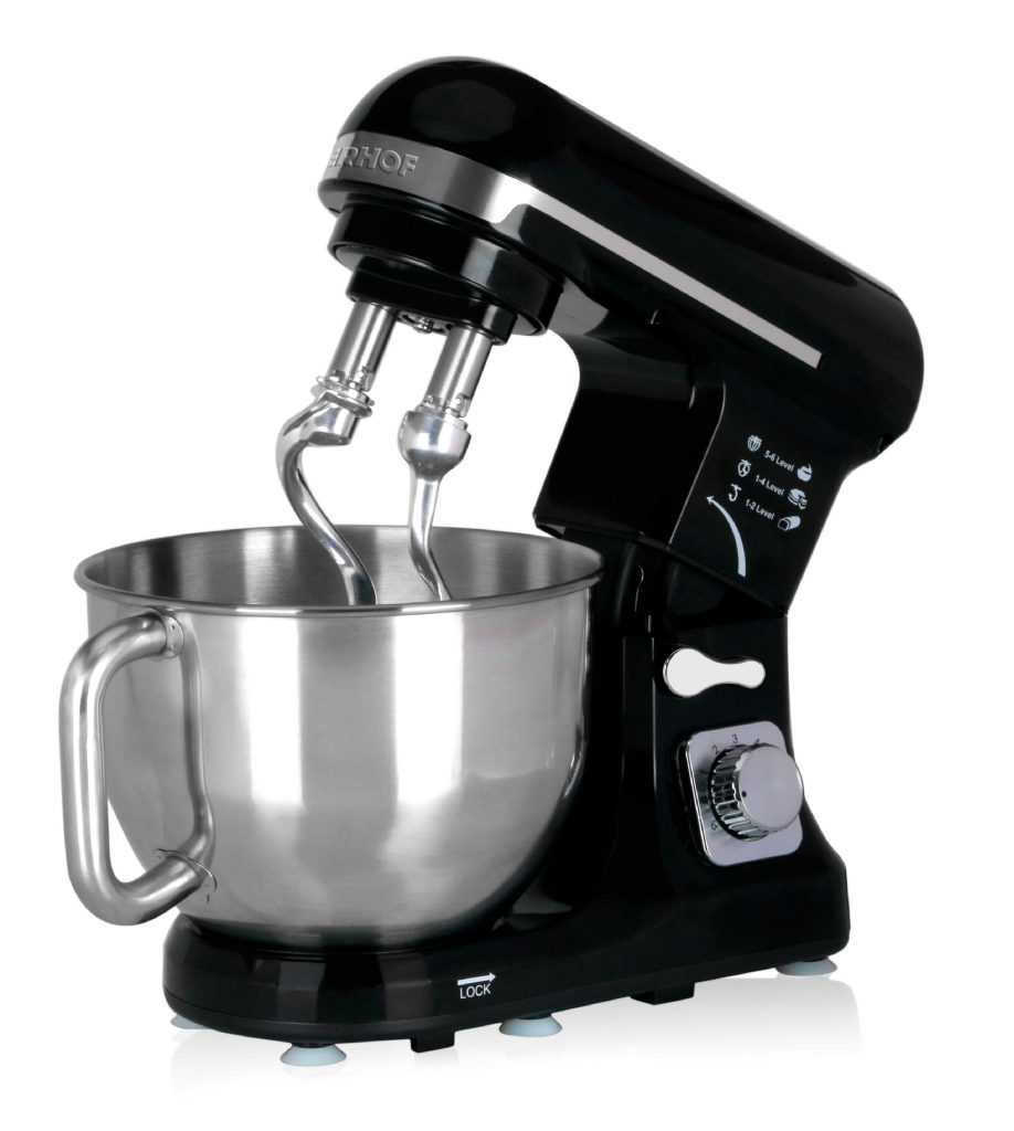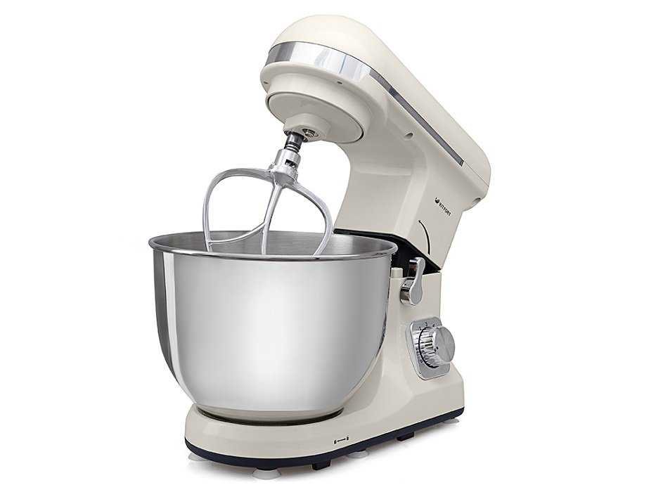 Один из лучших бюджетных планетарных миксеров для дома можно выбрать для взбивания белков или крема, перемешивания пюре. Недорогое устройство поставляется с чашей 4 л и четырьмя насадками, работает на пяти скоростях, есть функция турбо.