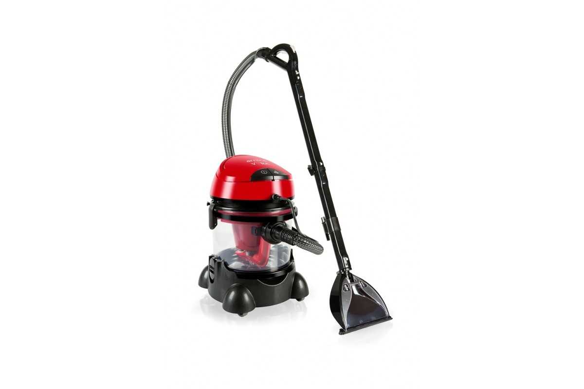 Моющий пылесос имеет запатентованную систему фильтрации. Пыль перемешивается в аквафильтре и растворяется в воде, и не может вернуться в воздух, поэтому эта модель станет идеальным выбором для аллергика. Имеет вместительный аквафильтр объемом 8 л, резервуар для шампуня 4,5 л, а вот шнур коротковат – всего 5,5 м. Мощность всасывания – 350 Вт, энергопотребление тоже приличное – 2400 Вт. В комплекте идут 5 насадок, шампунь и пеногаситель. Шланг армирован и имеет встроенную подачу шампуня, но это делает его негибким. Конструкция пылесоса простая до крайности, в нем буквально нечему ломаться. Из неудобств можно отметить маленькие колесики, которые недостаточно маневренны, плюс в них периодически путается шнур питания.