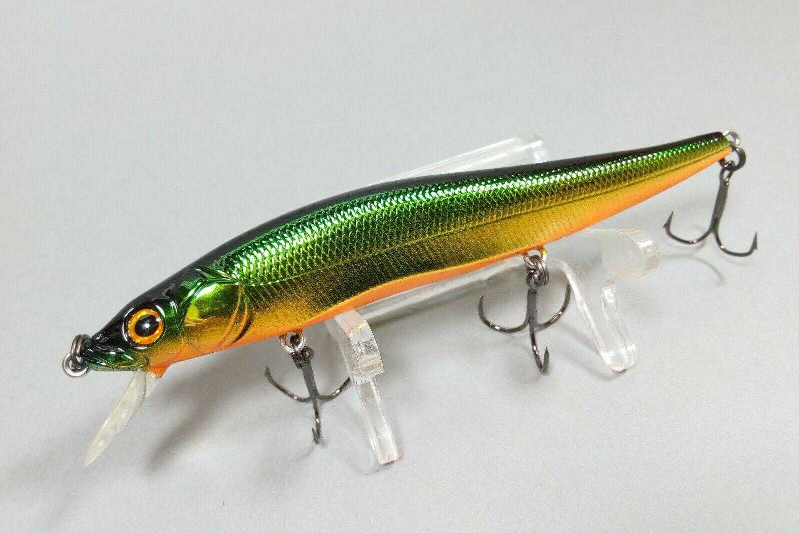 Megabass Vision OneTen 110 LBO не упорист, нормально продергивается спиннингами с быстрым строем средних тестов, до 20 граммов. Работает на любых проводках – мягком и жестком твичинге, протяжках, равномерках. На паузе вантен пошатывается и клюет немного головой вниз. Длина – 11.5 см, вес – 14 граммов, заглубление – до 1.7 метров.