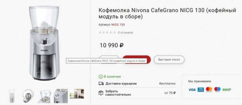 Чтобы не был случайно поврежден шнур, изготовителем предусмотрен механизм намотки. Приобретая Nivona NICG 130 CafeGrano, потребитель получает мельчайший помол зерен с сохранением аромата. Устройство отличается низким уровнем шума.