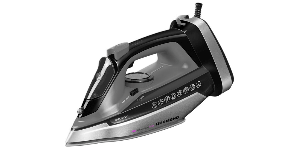 На седьмом месте рейтинга REDMOND RI-C272. Уникальный утюг, который можно использовать как в проводном, так и беспроводном режиме. Для реализации второго способа его подставка имеет съёмную конструкцию. Т. е. при необходимости маневрировать достаточно отсоединить заднюю панель вместе с проводом и производить глажку. Время от времени необходимо подсоединять утюг обратно, чтобы подошва не остывала. Эта опция также упрощает вертикальное отпаривание одежды. REDMOND обеспечивает мощный паровой удар (180 г в минуту), поэтому с лёгкостью избавляет одежду от сложных заломов и складок, причём как в вертикальном, так и горизонтальном положении.