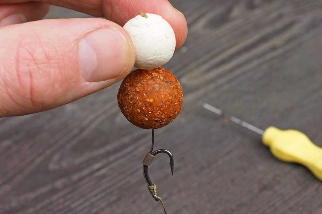 Такая оснастка довольно проста и очень эффективна. Принцип заключается в том, что бойл насаживается через волос и закрепляется у самого крючка. Таким образом, рядом с бойлом находится полностью свободный крючок, который легко вонзается в мягкие ткани рыбы, когда та пытается заглотить приманку.