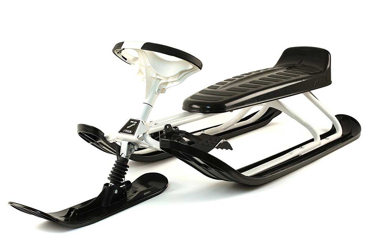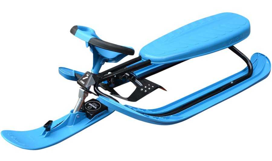 Модель Snow Rider от Stiga – это необычный снегокат-самокат. Он подходит для катания как в положении сидя, так и стоя. Рама транспорта выполнена из металла и выдерживает нагрузку до 100 кг.