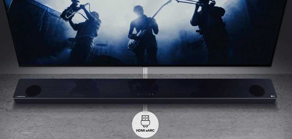 Саундбар для телевизора LG SNH5 с поддержкой технологии пространственного звучания обеспечивает экспрессивный саунд с максимальным эффектом погружения в аудиоконтент.