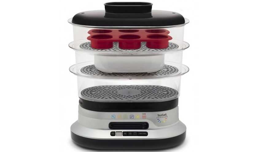 Завершает ТОП аппарат со средней стоимостью 7500 рублей. Единственная представленная на текущий момент фирмой пароварка, управляемая электроникой. Выполнена в черном цвете, корпус из ударопрочного пластика, для чаш использован аналогичный прозрачный материал. Мощность пароварки 900 Вт. Имеется сигнализирующая о подаче питания индикация и таймер на один час, по достижении заданного времени отключает аппарат автоматически. Экран в конструкции отсутствует.