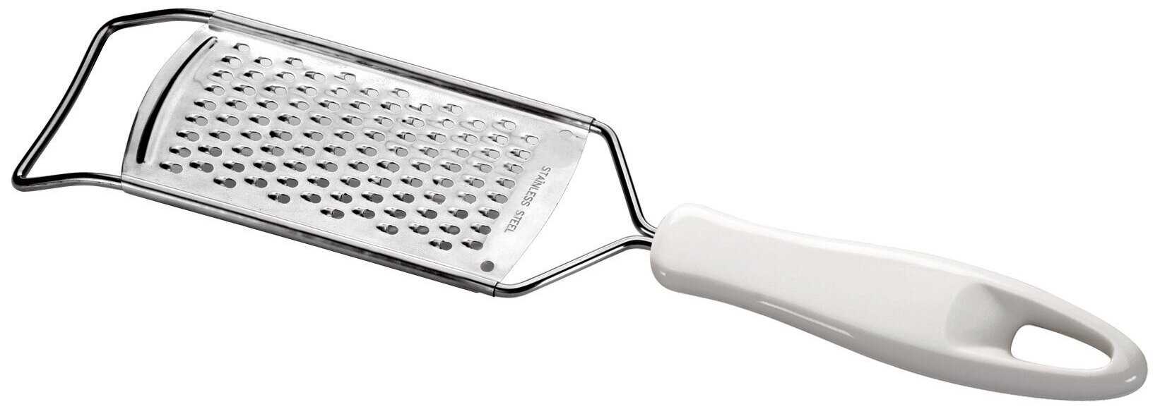 Тёрка из нержавеющей стали станет отличным помощником на кухне. Имеет одну грань и резиновый упор. К дополнительным функциям прибора относится нарезка соломкой. Легко очищается в посудомойке.