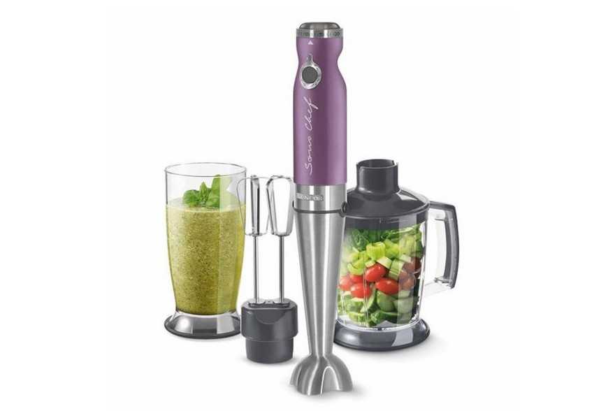 Ручной блендер подходит для супов-пюре и измельчения продуктов.